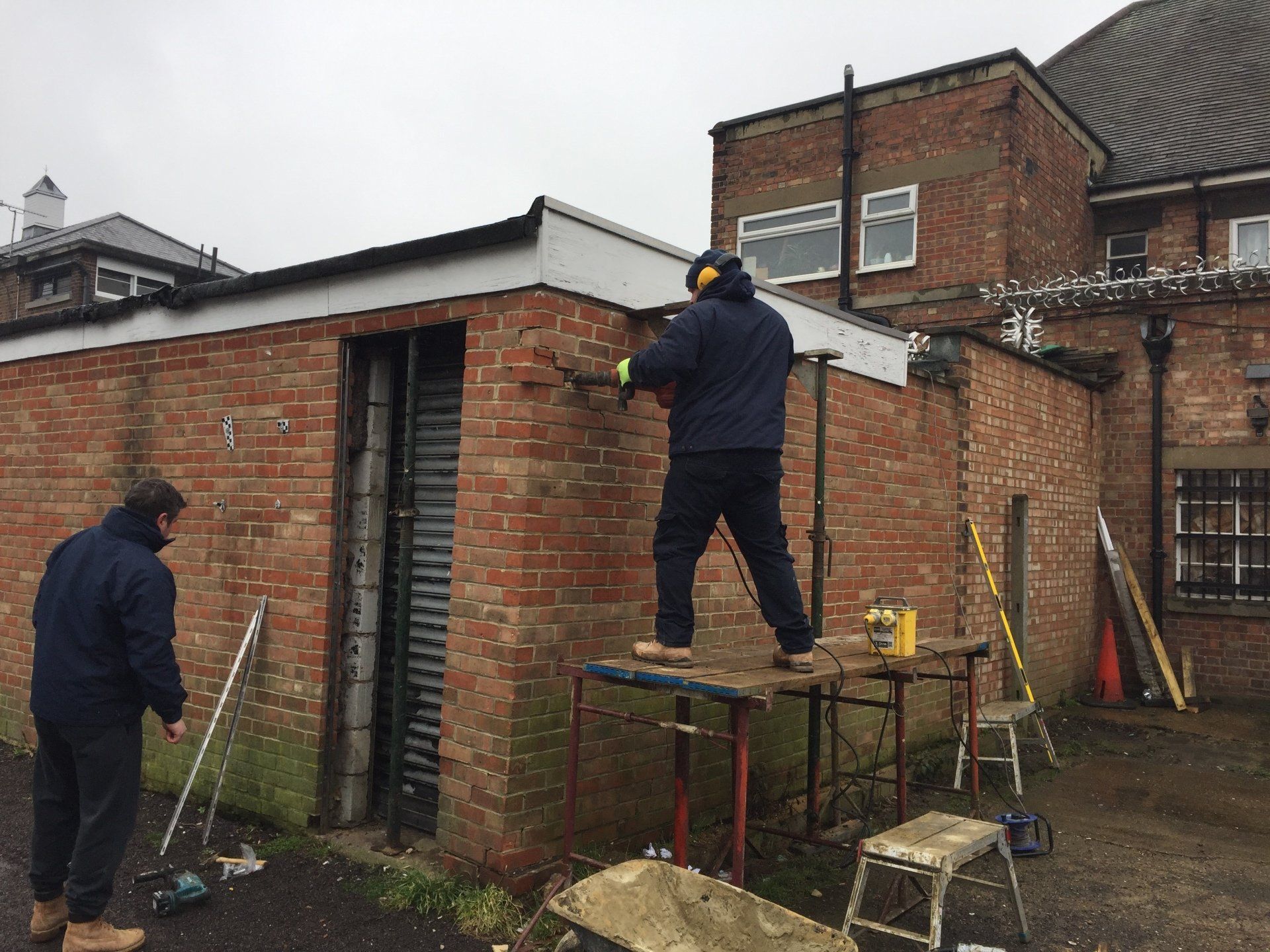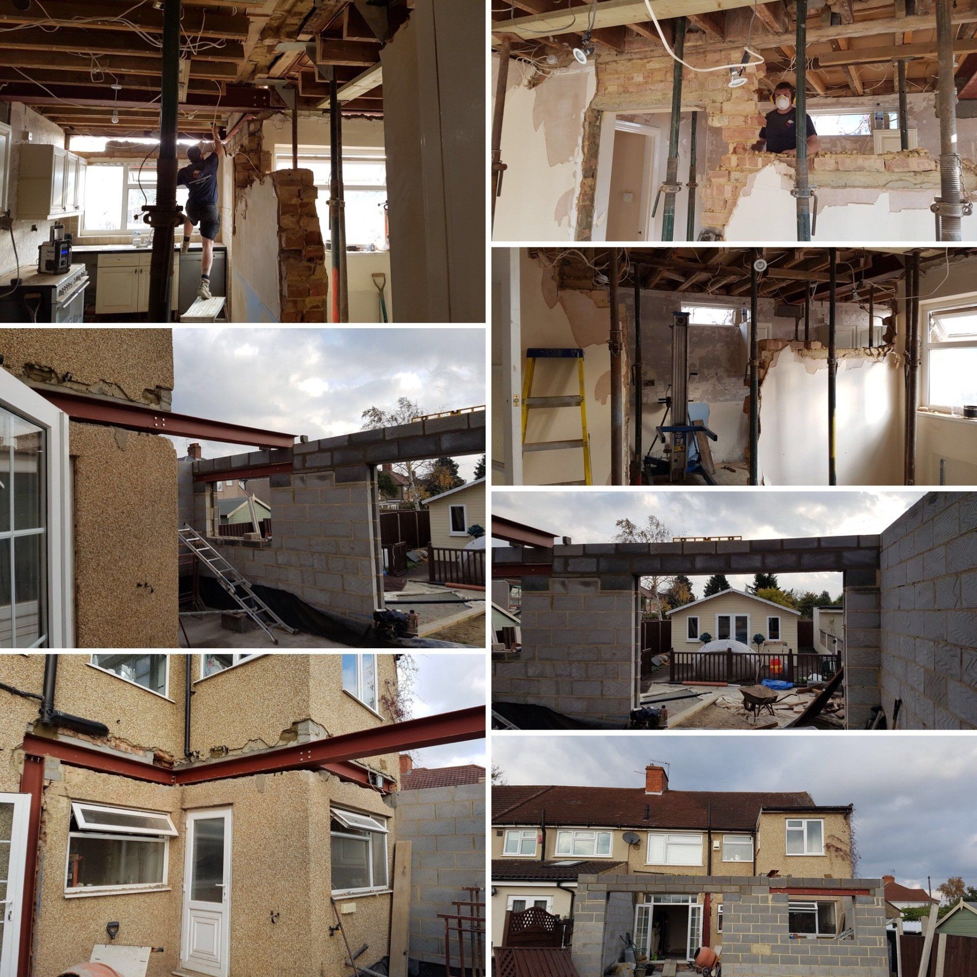 Temporary structural propping, installation of steel beams. Dry packing, forming of openings internally and externally and lintel installation .