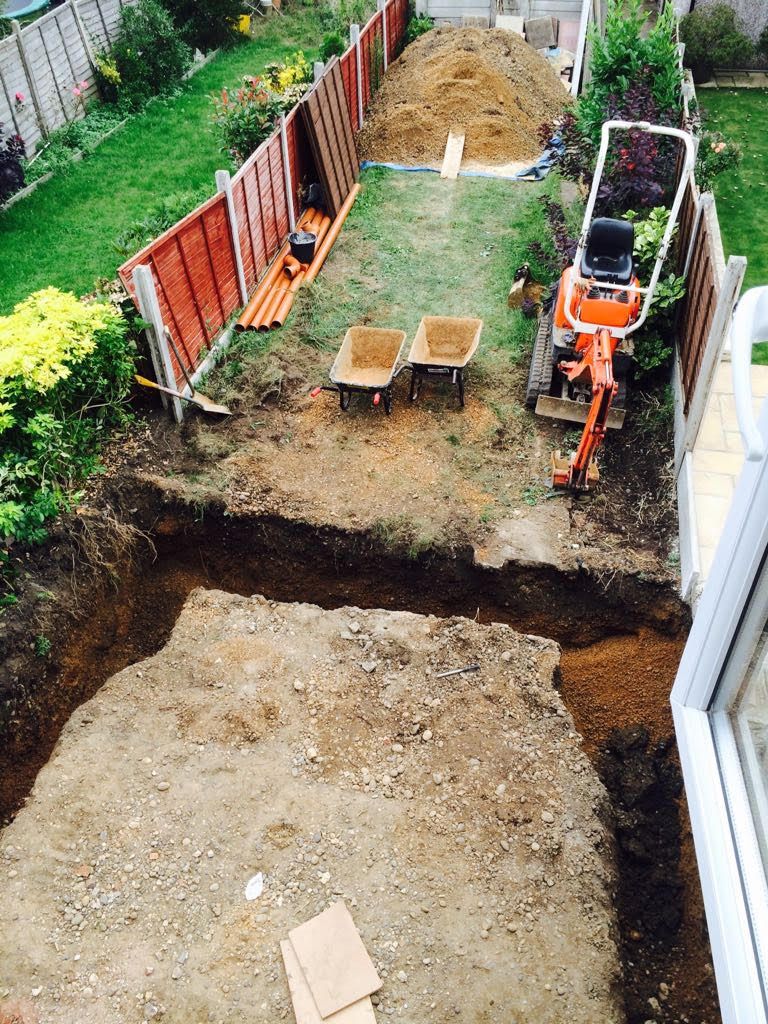 Preparation and excavation of groundwork, concrete pouring of foundations. Installation of all underground drainage, soak aways and inspection chambers.